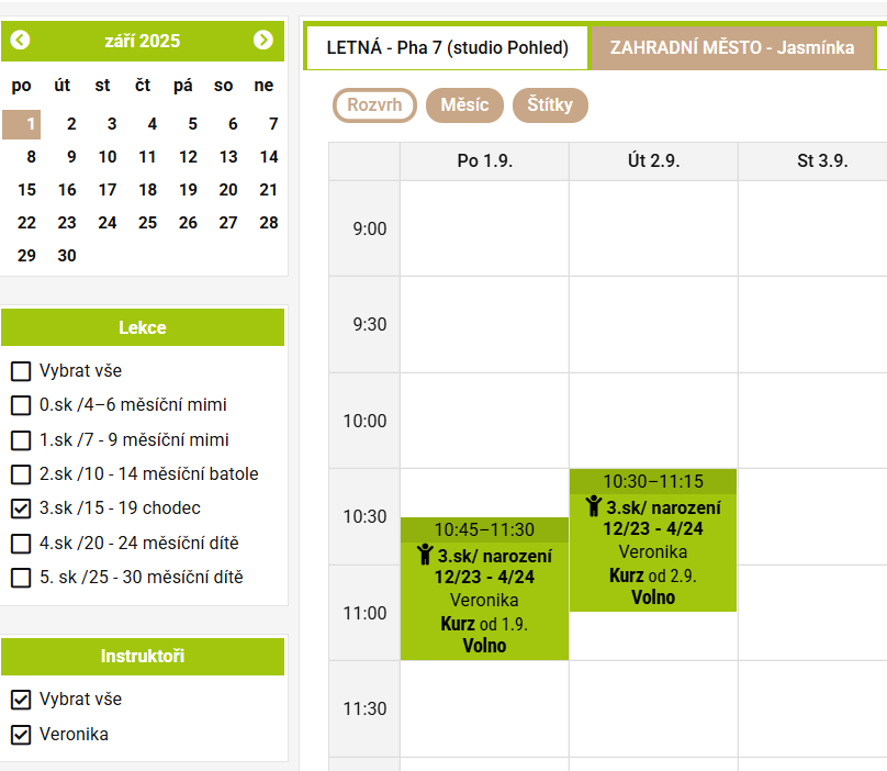 - vyberte si pro vás vhodné místo, den, čas podle nabídky ve vaší skupině