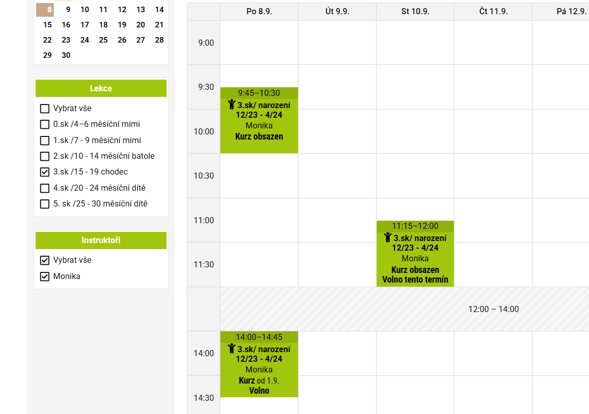 PONDĚLÍ dopo OBSAZENO + STŘEDA 11:15 - 1mVOLNÉ